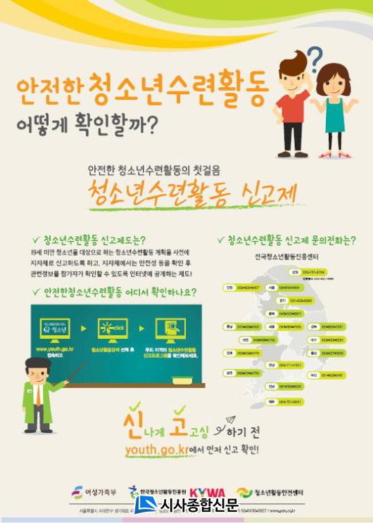 û¼Ò³â¼ö·ÃȰµ¿ ½Å°íÁ¦¶õ 19¼¼ ¹Ì¸¸ÀÇ Ã»¼Ò³âÀ» ´ë»óÀ¸·Î Çϴ û¼Ò³â ¼ö·ÃȰµ¿ °èȹÀ» ±¸¡¤±ºÃ»¿¡ ½Å°íÇϰí, ½Å°íµÈ ³»¿ëÀ» û¼Ò³â°ú Çкθ𰡠ȮÀÎÇÒ ¼ö ÀÖµµ·Ï ÀÎÅͳÝ(www.youth.go.kr) µî¿¡ °ø°³ÇÏ´Â Á¦µµ·Î 19¼¼ ¹Ì¸¸ û¼Ò³âÀ» ´ë»óÀ¸·Î ¼÷¹ÚÇÁ·Î±×·¥ ¶Ç´Â 150¸í ÀÌ»óÀÎ ´çÀÏÇü ÇÁ·ÎÇÁ·¥À» ÁøÇàÇϴ û¼Ò³â¼ö·Ã½Ã¼³ ¹× ¿µ¸®±â°üÀº ÇØ´ç ±¸¡¤±ºÃ»¿¡ ¹Ýµå½Ã Âü°¡ÀÚ ¸ðÁý 14ÀÏ Àü¿¡ ½Å°íÇØ¾ß Çϸç, ÇØ´ç ±¸±ºÃ»ÀÇ ½Å°í¼ö¸® ÈÄ Âü°¡Ã»¼Ò³âÀ» ¸ðÁýÇØ¾ß ÇÑ´Ù. û¼Ò³âȰµ¿ÁøÈï¹ý¿¡ ÀǰÅÇÏ¿© 2013³â 11¿ùºÎÅÍ ½ÃÇàÁßÀÌ´Ù.