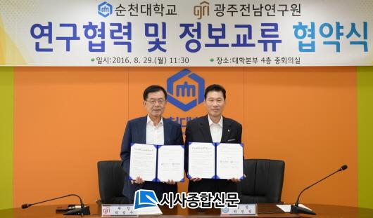[¼øÃµ/½Ã»çÁ¾ÇսŹ®]Àå¹Î±Ô ±âÀÚ = ¼øÃµ´ëÇб³(ÃÑÀå ¹ÚÁø¼º)´Â 29ÀÏ ±¤ÁÖÀü³²¿¬±¸¿ø(¿øÀå ¹Ú¼º¼ö)°ú ¿¬±¸ ¹× Á¤º¸±³·ù Çù¾àÀ» ü°áÇß´Ù°í ¹àÇû´Ù.