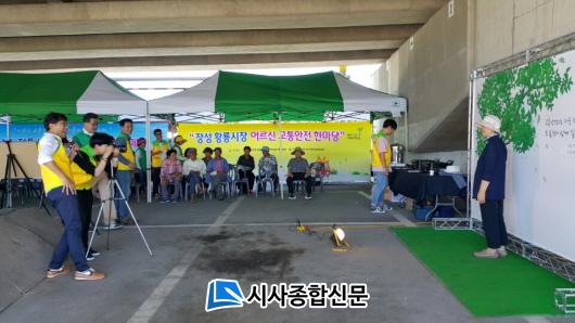 À̳¯ ¡®À强 Ȳ·æ½ÃÀå ¾î¸£½Å ±³Åë¾ÈÀü ÇѸ¶´ç¡¯À̶ó´Â Çö¼ö¸·ÀÌ °É¸° ºÎ½º Áß¾Ó¿¡´Â Ǫ¸£¸¥ ´ÀƼ³ª¹«¸¦ ¹è°æÀ¸·Î ÇÑ ±³Åë¾ÈÀü ½Çõ Æ÷ÅäÁ¸ÀÌ ¼³Ä¡µÆ°í, ½Ã¿øÇÑ ±×´Ã¸· ¹Ø¿¡´Â ¾î¸£½ÅµéÀ» À§ÇÑ ¾Æ´ÁÇÑ È޽İø°£ÀÌ ¸¶·ÃµÆ´Ù.