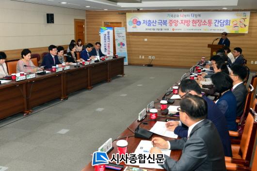 ±¤Áֽô 19ÀÏ ¿ÀÈÄ 2½Ã ½Ãû 3Ãþ ¼ÒȸÀǽǿ¡¼ ´ëÅë·É Á÷¼Ó ÀúÃâ»ê°í·É»çȸÀ§¿øÈ¸¿Í Áö¿ª ÀúÃâ»ê±Øº¹³×Æ®¿öÅ©°¡ ÇÔ²² ÇÏ´Â ¡®Áß¾Ó¡¤Áö¹æ ÇöÀå¼ÒÅë °£´ãȸ¡¯¸¦ °³ÃÖÇß´Ù. ¹®ÀÎ ÇàÁ¤ºÎ½ÃÀå ÁÖÀç·Î ¿¸° °£´ãȸ¿¡´Â 20¿© ¸íÀÇ Áö¿ª ³×Æ®¿öÅ© ´ëÇ¥°¡ Âü¼®ÇØ Áö¿ªÃâ»êÁ¤Ã¥ ÇöȲ ¹ßÇ¥, Åä·Ð, ´ëÁ¤ºÎ Ãâ»êÁ¤Ã¥ °ÇÀÇ, Èñ¸ÁÀå³°¨µµ¼°ü ¶ó¿îµù ¼øÀ¸·Î ÁøÇàµÆ´Ù.
