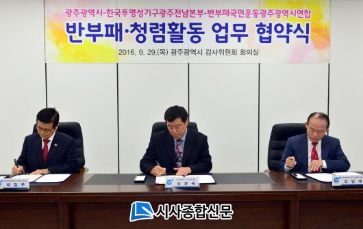 À̹ø Çù¾àÀº ±¤ÁÖ½Ã¿Í ¹ÝºÎÆÐ ¹Î°£´Üü°¡ ÃßÁøÇϰí ÀÖ´Â ´Ù¾çÇÑ Ã»·Å․¹ÝºÎÆÐ Á¤Ã¥À» »óÈ£ °øÀ¯ÇÏ°í ¼ÒÅëÇÏ´Â °ÍÀ¸·Î, ½ÃÀÇ Ã»·ÅÇÑ °øÁ÷¹®È¸¦ ±¸ÇöÇϴµ¥ ¸ñÀûÀÌ ÀÖ´Ù. À̹ø Çù¾à¿¡ µû¶ó 3°³ ±â°üÀº Áö¿ª»çȸ ºÎÁ¤ºÎÆÐ Ãß¹æ, û·ÅÇÑ Ç³Åä Á¶¼º, ûŹ ±ÝÁö¹ý Á¶±â Á¤Âø Áö¿øÀ» À§ÇÑ °øµ¿ ³ë·Â, ±¤Áֽà û·ÅÇàÁ¤ °øµ¿ ÃßÁø µî Áö¿ªÃ»·Å¹®È½Çõ¿îµ¿¿¡ »óÈ£ Çù·ÂÇÏ°Ô µÈ´Ù.