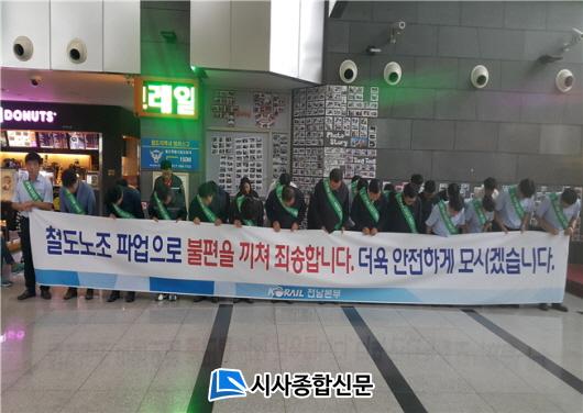 [¼øÃµ/½Ã»çÁ¾ÇսŹ®]Àå¹Î±Ô ±âÀÚ = ÄÚ·¹ÀÏ Àü³²º»ºÎ´Â öµµ³ëÁ¶ÀÇ ºÒ¹ýÆÄ¾÷ 4ÀϰÀÎ 30ÀÏ(±Ý), ¼øÃµ¿ª ¸ÂÀ̹濡¼ ¡®Ã¶µµ³ëÁ¶ÀÇ ÆÄ¾÷À¸·Î ÀÎÇÑ ´ë±¹¹Î »ç°ú¿Í Á¶¼ÓÇÑ Ã¶µµ Á¤»óÈ·Î ¾ÈÀüÇÑ Ã¶µµ¿îÇà¿¡ ³ë·ÂÇϰڴ١¯´Â ´ÙÁüÀ» ÇÏ¿´´Ù.