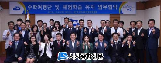 [¿©¼ö/½Ã»çÁ¾ÇսŹ®]Àå¹Î±Ô ±âÀÚ = ¿©¼ö½Ã(½ÃÀå ÁÖöÇö)´Â Áö³ 6ÀÏ °¡À»Ã¶ ¼öÇп©Çà´Ü°ú üÇèÇнÀ´ÜÀ» À¯Ä¡Çϱâ À§ÇØ Àü±¹Çб³¿î¿µÀ§¿øÇùÀÇȸ °ü°èÀÚ¸¦ ÃÊÃ»ÇØ ¾÷¹«Çù¾à(MOU)À» ü°áÇÏ°í ÆÔÅõ¾î¸¦ ½Ç½ÃÇß´Ù.