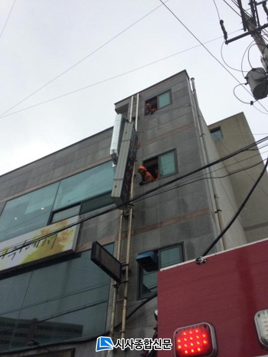 °Ç³À¸·Î ÀÎÇØ °£ÆÇÀÌ ¶³¾îÁú °Í °°´Ù´Â ½Å°í Á¢¼ö¸¦ ¹ÞÀº ¿©¼ö¼Ò¹æ¼ 119±¸Á¶´ë´Â ½Å¼ÓÈ÷ ÇöÀå¿¡ Ãâµ¿ÇØ ³«ÇÏ À§ÇèÀÌ ÀÖ´Â °£ÆÇÀ» ºÐ¸® ÈÄ Áö»óÀ¸·Î ³»·Á ¾ÈÀüÁ¶Ä¡¸¦ Çß´Ù.