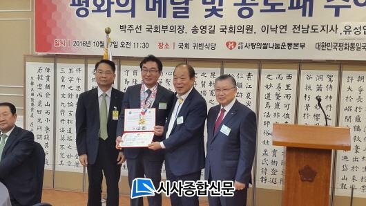 [Àü³²/½Ã»çÁ¾ÇսŹ®]¾çµÎ¿µ ±âÀÚ = À̳«¿¬ Àü¶ó³²µµÁö»ç°¡ 17ÀÏ ±¹È¸ ºÎÀÇÀå½Ç¿¡¼ ´ëÇѹα¹ ÆòÈÅëÀÏ ±¹¹Î¹®ÈÁ¦ Á¶Á÷À§¿øÈ¸·ÎºÎÅÍ ÇѹݵµÀÇ ÆòÈ¿Í ÅëÀÏÀ» À§ÇÑ È°µ¿¿¡ Àû±Ø Âü¿©Çϰí Çù·ÂÇØÁØ °ø·Î·Î¡®Çѹݵµ ÆòÈ ¸Þ´ÞÁõ¡¯°ú ¡®Çѹݵµ ÆòÈÀÇ ¸Þ´Þ¡¯À» ¼ö»óÇß´Ù.