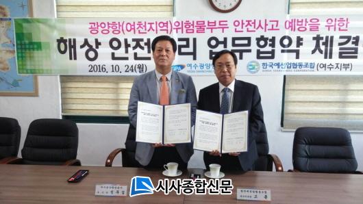 [¿©¼ö/½Ã»çÁ¾ÇսŹ®]Àå¹Î±Ô ±âÀÚ = ¿©¼ö±¤¾çÇ׸¸°ø»ç(»çÀå ¼±¿øÇ¥, ÀÌÇÏ °ø»ç)´Â 24ÀÏ Çѱ¹¿¹¼±Çùµ¿Á¶ÇÕ ¿©¼öÁöºÎ(ÁöºÎÀå °í·û)¿Í ±¤¾çÇ×(¿©ÃµÁö¿ª) À§Çè¹°ºÎµÎ ¾ÈÀü»ç°í ¿¹¹æÀ» À§ÇÑ ÇØ»ó ¾ÈÀü°ü¸® ¾÷¹«Çù¾àÀ» ü°áÇß´Ù.