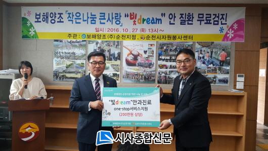 ÀÌ¿¡ º¸ÇؾçÁ¶ ±è»óÈ£ ÁöÁ¡ÀåÀº ¡°2016³â ºûdream ¹«·á ¾È °ËÁøÀ» ÅëÇØ ¸¹Àº ´ë»óÀÚµéÀÌ ¾ÈÁúȯÀ» Á¶±â ¹ß°ßÇÏ¿© Àû±â¿¡ Ä¡·áÇØ ½Ç¸íÀ» ¿¹¹æÇÏ°í ´« °Ç°À» ÁöŰ±æ ¹Ù¶õ´Ù¡± ¶ó°í ¸»Çß´Ù. ¼øÃµ½ÃÀÚ¿øºÀ»ç¼¾ÅÍ ±èÀÏÁß ¼ÒÀåÀº ¡°ºûdream ¾È °ËÁøÀ» ÅëÇØ Áø·á¸¦ ¹ÞÀº ´ë»óÀÚµéÀÌ °¨»ç¸¦ Ç¥ÇÏ°í µû¶æÇÑ ¸» ÇѸ¶µð¿¡ ÇູÇÔÀ» ´À²¼´Ù¸ç, ¾ÕÀ¸·Îµµ Áö¿ª¹ÎÀ» À§ÇÑ °³°³ÀÎ ¸ÂÃãÇü Áö¿ª¿¬°è»ç¾÷À» Ȱ¼ºÈ ½ÃŰ°Ú´Ù¡±°í ¸»Çß´Ù.