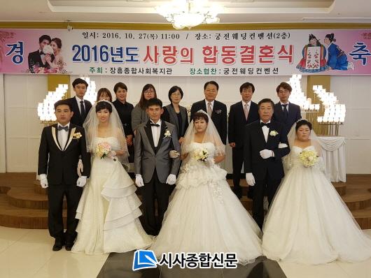 ¿ÃÇØ·Î 11³â°¸¦ ¸ÂÀÌÇÑ »ç¶ûÀÇ ÇÕµ¿°áÈ¥½ÄÀº Áö¿ªÁÖ¹ÎÀÇ ÈÄ¿ø±Ý°ú ½Å»êºÎÀΰú(¿øÀå ½ÉÁ¤Èñ), ±ÃÀü¿¹½ÄÀå(±è¼®ÈÆ)ÀÇ Áö¿øÀ¸·Î ¿·È´Ù. ÀÓ¼º°ï(È¿¼º±³È¸) ¸ñ»çÀÇ ÁÖ·Ê·Î ÁøÇàµÈ °áÈ¥½ÄÀº ÀÌÃæ½Ä Àü³²µµÀÇ¿øÀ» ºñ·ÔÇÑ ÀåÈﱺÀÇȸ ¿ÕÀ±Ã¤ ºÎÀÇÀå, ±èÈÀÚÀÇ¿ø, äÀº¾ÆÀÇ¿ø µî Áö¿ª »çȸ´ÜüÀå°ú ÁֹεéÀÌ Çϰ´À¸·Î Âü¼®Çß´Ù.