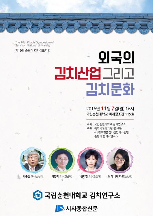 ¼øÃµ´ëÇб³ ±èÄ¡¿¬±¸¼Ò(¼ÒÀå ¹ÚÁ¾Ã¶ ±³¼ö)°¡ ÁÖÃÖÇÏ´Â ÀÌ ³¯ ½ÉÆ÷Áö¾ö¿¡´Â ÃÑ 4¸íÀÇ ±èÄ¡ ¿¬±¸ÀÚ°¡ ¿¬»ç·Î Âü¿©ÇÑ´Ù. À̳¯ ¼øÃµ´ë ¹ÚÁ¾Ã¶ ±³¼ö¿Í õÁö¿¬ ±³¼ö°¡ °¢°¢ Áß±¹ÀÇ ±èÄ¡»ê¾÷ ¹× ±èÄ¡¹®È, ¹Ì±¹ÀÇ ±èÄ¡»ê¾÷°ú ¹®È¸¦, Àü³²´ë ÃÖ¸í¶ô ±³¼ö°¡ ÀϺ»ÀÇ °« ÀýÀÓ »ê¾÷¿¡ ´ëÇØ ¹ßÇ¥ÇÒ ¿¹Á¤ÀÌ´Ù. ¶ÇÇÑ, È£ Ƽ ºñ¿¡ Ÿ¿À¾¾°¡¡®º£Æ®³²ÀÇ ±èÄ¡»ê¾÷°ú ±èÄ¡¹®È¡¯¿¡ ´ëÇØ ¹ßÇ¥ÇÏ´Â µî ¿Ü±¹ÀÇ ±èÄ¡»ê¾÷°ú ¹®È¿¡ ´ëÇÑ ¿¬±¸ °á°ú¸¦ °øÀ¯ÇÒ ¿¹Á¤ÀÌ´Ù.