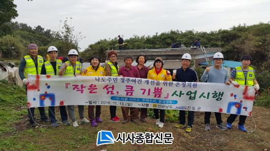 À̳¯ ºÀ»ç´Ü¿øµéÀº ½Ò½ÒÇÑ ³¯¾¾¿¡µµ ±¸½½¶¡À» È긮¸ç, ÆÄµµ¿¡ ¹Ð·Á¿Â ¼¶ ÁÖº¯ÀÇ ¾²·¹±â¸¦ Ä¡¿ì°í ¸¶À» °÷°÷À» ´©ºñ¸é¼ ȯ°æ Á¤È¸¦ ½Ç½ÃÇß´Ù.¶Ç À°Áö·Î ¿À°¡±â ¾î·Á¿î ¾î¸£½Åµé¿¡°Ô ÀÌ¡¤¹Ì¿ë ºÀ»ç·Î ¸Ó¸®¸¦ ´ÜÁ¤ÇÏ°Ô ¼ÕÁúÇØ ÁÖ°í ÀÚÀ糪 Àåºñ°¡ ¾ø¾î °íÄ¥ ¾öµÎÁ¶Â÷ ³»Áö ¸øÇÏ´Â ÁöºØÀ̳ª º®Ã¼, Àü¼± µîµµ ¼ö¸®Çß´Ù.