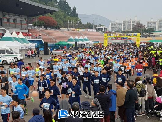 ´ëÇÑÀ°»ó°æ±â¿¬¸ÍÀ¸·ÎºÎÅÍ °øÀÎÀ» ¹ÞÀº Á¤½Ä ¸¶¶óÅæÄÚ½º·Î ¾Ë·ÁÁø Ç®ÄÚ½º´Â ÆÈ¸¶°æ±âÀå ÀÔ±¸¿¡¼ Ãâ¹ßÇØ °í ³²½Â·æ¼±»ýÀÇ À̸§À» µý ³²½Â·æ·Î¸¦ Áö³ª µ¿Ãµ°ú ¼øÃµ¸¸À» ´Þ¸®¸ç Ç®, ÇÏÇÁ, 10km, 5km ÄÚ½º·Î ÆîÃÄÁ³´Ù. ´ëȸ ´çÀÏÀº °¡À» Á¤Ã븦 ´À³¥ ¼ö ÀÖ´Â ¸¼°í ±ú²ýÇÑ ³¯¾¾·Î Âü°¡ ¼±¼ö¿Í ½Ã¹Îµé ´ëºÎºÐÀÌ ¿ÏÁÖÇßÀ¸¸ç ´Ù¾çÇÑ º¼°Å¸®¿Í öÀúÇÑ Áغñ·Î »ç°Ç¡¤»ç°í ¾øÀÌ ¸ðµÎ ¸¸Á·Çß´Ù´Â ÈĹ®ÀÌ´Ù.