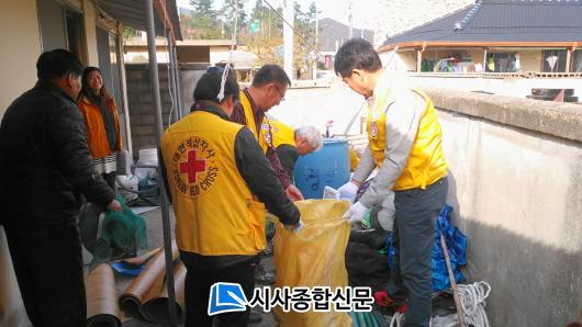 17ÀÏ Áøµµ±º¿¡ µû¸£¸é ´ëÇÑÀû½ÊÀÚ»ç ±¤ÁÖ¡¤Àü³²Áö»ç Áö¿øÀ¸·Î Á¶±Ý¸¸ ºñ°¡ ¿Íµµ Áֹ濡¼ ¹°ÀÌ ¼Ú°í º®¿¡´Â °õÆÎÀÌ·Î ¾ÇÃë°¡ ½ÉÇÑ ÁÖ°Åȯ°æ¿¡ °ÅÁÖÇÏ´Â µ¶°Å³ëÀÎ Y¸ð(°í±º¸é¡¤67¼¼)¾¾ ÁÖÅÃÀÇ Áý¼ö¸® »ç¾÷À» ÃÖ±Ù ¿Ï·áÇß´Ù. µ¶°Å³ëÀÎ Y¸ð¾¾´Â ¡°Ãß¿î °Ü¿ïÀÌ ´Ù°¡¿Í ¸¹Àº °ÆÁ¤À» Çߴµ¥ ±ú²ýÇÏ°Ô Áý¼ö¸®¸¦ ÇØÁÖ¾î Áøµµ±º Èñ¸Áº¹ÁöÁö¿ø´Ü°ú Àû½ÊÀÚ ÁøµµÁö±¸ÇùÀÇȸ ȸ¿øµé²² Á¤¸» °í¸¿´Ù¡±°í ¸»Çß´Ù.