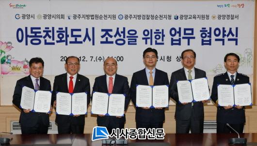 ±¤¾ç½Ã´Â 12¿ù 7ÀÏ ¾Æµ¿ÀÇ 4´ë ±Ç¸®(»ýÁ¸, ¹ß´Þ, º¸È£, Âü¿©±Ç)À» º¸ÀåÇÏ°í ¸ðµç ¾Æµ¿ÀÌ ÇູÇÏ°í ¾ÈÀüÇÑ µµ½Ã¸¦ ¸¸µé±â À§ÇØ ±¤ÁÖÁö¹æ¹ý¿ø ¼øÃµÁö¿øÀ» ºñ·ÔÇÑ 6°³ ±â°ü°ú ¾Æµ¿Ä£Èµµ½Ã Á¶¼ºÀ» À§ÇÑ ¾÷¹«Çù¾àÀ» ü°áÇß´Ù°í ¹àÇû´Ù. À̳¯ Çù¾à½Ä¿¡´Â Á¤Çöº¹ ±¤¾ç½ÃÀå°ú ¼ÛÀçõ ±¤¾ç½ÃÀÇȸ ÀÇÀå, ÀåÁØÇö ±¤ÁÖÁö¹æ¹ý¿ø ¼øÃµÁö¿øÀå, ¹®Âù¼® ±¤ÁÖÁö¹æ°ËÂûû ¼øÃµÁöûÀå, ÀÓ¿øÀç ±¤¾ç±³À°Áö¿øÃ» ±³À°Àå, ¾ç¿ìõ ±¤¾ç°æÂû¼Àå µî 6°³ ±â°üÀåÀÌ Âü¼®Çß´Ù.