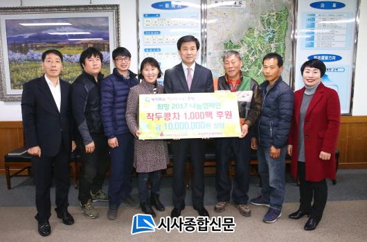¶ÇÇÑ ´ã¾ç±º¿¡ »ç¾÷ÀåÀ» µÎ°í ÀÖ´Â »çȸÀû±â¾÷ ¿µ³óÁ¶ÇÕ¹ýÀÎ ¡®±¤¼ö¡¯¿¡¼µµ 200¸¸¿ø »ó´çÀÇ ¹é¹Ì 50Æ÷¸¦ ȼø±º Àú¼Òµæ °¡Á¤À» À§ÇØ ½á´Þ¶ó¸ç ±âŹÇß´Ù.ȼø±º °ü°èÀÚ´Â ¡°¿¬¸»À» ¸Â¾Æ Áö¿ª³»¡¤¿Ü¿¡¼ ³ª´®¿¡ °ü½ÉÀ» °®°í Âü¿©ÇØ Áֽŵ¥ ´ëÇØ °¨»çµå¸°´Ù¡±¸ç ¡°¿ÂÁ¤ÀÇ ¼Õ±æÀÌ ¼ÒÁßÇÑ °÷¿¡ ¾²ÀÏ ¼ö ÀÖµµ·Ï ÃÖ¼±À» ´ÙÇϰڴ١±°í ¸»Çß´Ù.