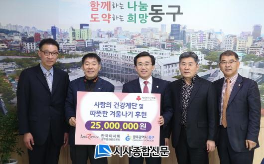 µ¿±¸Ã» Á¢°ß½Ç¿¡¼ ÁøÇàµÈ À̳¯ Àü´Þ½Ä¿¡¼´Â ¹Ú»ó±æ Çѱ¹¸¶»çȸ ±¤ÁÖºÎÁö»çÀåÀÌ ±è¼ºÈ¯ µ¿±¸Ã»Àå¿¡°Ô 120¸¸ ¸íÀÌ °Ç°°è´ÜÀ» ÀÌ¿ëÇϸç Àû¸³ÇÑ 1,000¸¸¿øÀ» Àü´ÞÇß´Ù. È£³²±Ç ÁöÀÚü Áß ÃÖÃʷΠû»ç º»°ü 1~6Ãþ¿¡ ¼³Ä¡µÅ Áö³ÇغÎÅÍ ¿î¿µµÈ »ç¶ûÀÇ °Ç°°è´ÜÀº °è´Ü ÀÌ¿ëÀ» À¯µµÇϱâ À§ÇØ ºû°ú °¡¾ß±Ý ¼Ò¸®°¡ ³ªµµ·Ï ¼³°èµÆÀ¸¸ç ÀÌ¿ëÀÚ°¡ ÇÑ ÃþÀ» ¿À¸¦ ¶§¸¶´Ù 10¿ø¾¿ÀÇ ±âºÎ±ÝÀÌ Àû¸³µÇ´Â ¹æ½ÄÀ¸·Î ¿î¿µµÅ ¿Ô´Ù.