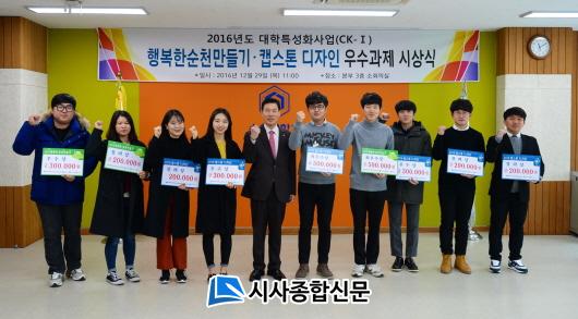 Áö³ÇØ 9¿ùºÎÅÍ 12¿ù±îÁö 3°³¿ù°£ ÀÌ·ç¾îÁø °ø¸ð °á°ú, ÃÖ¿ì¼ö»óÀº ÇàÁ¤Çаú õ¼ººó(10Çйø), Á¤ÈñÁÖ(10Çйø), ±è¹Ì¸²(14Çйø) µîÀ¸·Î ±¸¼ºµÈ ¡®Å¸ÀÓ¿öÇÁ¡¯ ÆÀÀÌ, ¿ì¼ö»óÀº ¹°·ùÇаú ±è½Âö µî 4¸íÀ¸·Î ±¸¼ºµÈ ¡®µµ¾à¹°·ù¡¯ ÆÀÀÌ, Àå·Á»óÀº Áß¾îÁß¹®Çаú ÀÌÁö¿µ µî 4¸íÀ¸·Î ±¸¼ºµÈ ¡®¿¡Äڹ̡¯ ÆÀÀÌ ¹Þ¾Ò´Ù.