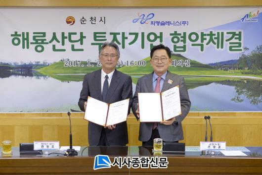 Á¶ÃæÈÆ ¼øÃµ½ÃÀå°ú ȸ¸í¼Ö·¹´Ï½º ÇÑâȣ ´ëÇ¥´Â 25ÀÏ ½Ãû ¼ÒȸÀǽǿ¡¼ ½ÃÀÇȸ ÀÓÁ¾±â ÀÇÀå, ¹Ú°è¼ö ÀÇ¿ø, ±â¾÷°ü°èÀÚ µîÀÌ Âü¼®ÇÑ °¡¿îµ¥ ÇØ·æ»ê´Ü¿¡ ÅõÀÚÇϱâ·Î Çù¾àÀ» ¸Î¾ú´Ù.