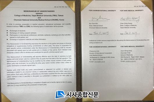 Àü³²´ë ÀÇ´ë´Â ÃÖ±Ù ´ë¸¸ ŸÀ̺£ÀÌ Àǰú´ëÇÐ(Taipei Medical University)°ú Çлý±³·ù ¹× °øµ¿¿¬±¸¸¦ À§ÇÑ MOU¸¦ ü°áÇß´Ù. µÎ ´ëÇÐÀº À̹ø Çù¾àÀ» ÅëÇØ ¾ÕÀ¸·Î °øµ¿ ¿¬±¸´Â ¹°·Ð ±³¼ö ¹× Çлý ±³·ù¸¦ À§ÇØ È°¹ßÈ÷ Çù·ÂÇϱâ·Î Çß´Ù.