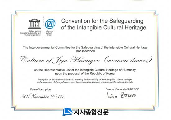 ±èâ¼± ÇØ¾ç¼ö»ê±¹ÀåÀº ¡°Á¦ÁÖÇØ³à¹®ÈÀÇ À¯³×½ºÄÚ Àηù¹«Çü¹®ÈÀ¯»ê µîÀç ÀÎÁõ¼ Àü´Þ½ÄÀ» ÅëÇØ ¿Â µµ¹ÎÀÌ ´Ù½Ã±Ý Á¦ÁÖÇØ³à¹®ÈÀÇ À¯³×½ºÄÚ µîÀç Àǹ̸¦ µÇ»õ±â°í, Á¦ÁÖÇØ³àµéÀÌ ÀںνÉÀ» °®´Â ÀÚ¸®°¡ µÉ °Í¡±À̶ó ÀüÇß´Ù.