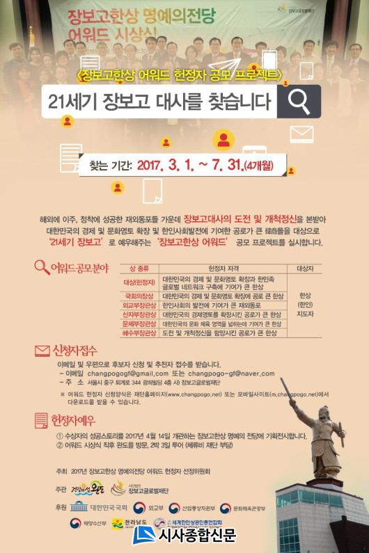 ÀÌ ¾î¿öµå´Â ÇØ¿Ü¿¡ ÀÌÁÖ, Á¤Âø¿¡ ¼º°øÇÑ Àç¿Üµ¿Æ÷µé °¡¿îµ¥ À庸°í´ë»çÀÇ µµÀü ¹× °³Ã´Á¤½ÅÀ» º»¹Þ¾Æ ´ëÇѹα¹ÀÇ °æÁ¦ ¹× ¹®È¿µÅä È®Àå ¹× ÇÑÀλçȸ¹ßÀü¿¡ ±â¿©ÇÑ °ø·Î°¡ Å« ÇÑ»ó(ùÛßÂ)µéÀ» ´ë»óÀ¸·Î ÇÑ´Ù. ¾î¿öµå °ø¸ð´Â ´ë»ó(ÇåÁ¤ÀÚ)°ú ±¹È¸ÀÇÀå»ó, ¿Ü±³ºÎÀå°ü»ó, »ê¾÷ÀÚ¿øºÎÀå°ü»ó, ¹®ÈüÀ°°ü±¤ºÎÀå°ü»ó, ÇØ¾ç¼ö»óºÎÀå°ü»ó µî 6°³ ºÐ¾ß·Î µÇ¾î ÀÖ´Ù.