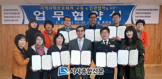À̳¯ Çù¾à½Ä¿¡ Âü¿©ÇÑ ´Üü´Â ÀåÈﱺ¿©¼ºÀÚ¿øºÀ»çȸ, ÀåÈïÀ¾»õ¸¶À»ÁöµµÀÚȸ, ÀåÈïÀ¾»õ¸¶À»ºÎ³àȸ, (»ç)ÀåÈﱺ¹æ¹ü¿¬ÇÕȸÀ¾³»¹æ¹ü´ë, ÀåÈïÀ¾¿©¼ºÀÚÀ²¹æ¹ü´ë, ÀåÈﱺÀÇ¿ë¼Ò¹æ¿¬ÇÕȸ, ÆÄ¶û»õºÀ»ç´Ü µî 7°÷ÀÌ´Ù. ¾÷¹«Çù¾àÀ» ¸ÎÀº °¢ ºÀ»ç´Üü´Â ÀåÈïÀ¾À» Áß½ÉÀ¸·Î »óÈ£ ±ä¹ÐÇÏ°í ¿ìÈ£ÀûÀÎ Çù·ÂÀ» À̾°í, Áö¿ª»çȸ º¸È£Ã¼°è ±¸ÃàÀ» À§ÇØ ³ë·ÂÇϱâ·Î Çß´Ù.