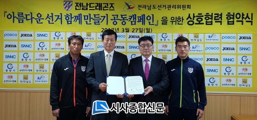 À̳¯ Çù¾à½Ä¿¡´Â Àü³²µå·¡°ïÁî ½Å½ÂÀç »çÀå, ±èÇö¼ö ¼ö¼®ÄÚÄ¡, ÃÖÈ¿Áø ¼±¼ö¿Í Àü³²¼±°üÀ§ ¹®ÀÀö »ç¹«Ã³ÀåÀÌ Âü¼®Çß´Ù. À̹ø Çù¾à¿¡¼ ¾ç ±â°üÀº Àü³²µå·¡°ïÁî ¼Ò¼Ó¼±¼ö Ȱ¿ë ÅõÇ¥Âü¿© È«º¸¿µ»ó Á¦ÀÛ°ú Ȩ°æ±â ½ÃÃàÇà»ç¿¡¼ ´ëÅë·É¼±°Å È«º¸È°µ¿¿¡ Àû±Ø Çù·ÂÇϱâ·Î Çß´Ù.