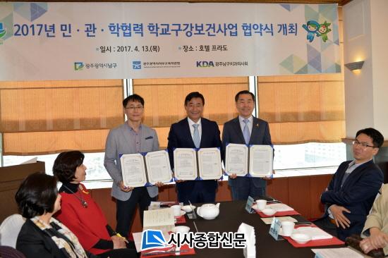 13ÀÏ ³²±¸¿¡ µû¸£¸é À̳¯ ¿ÀÀü ¹é¿îµ¿ ÇÁ¶óµµÈ£ÅÚ¿¡¼ ¡®2017³âµµ ¹Î¡¤°ü¡¤ÇÐ Çù·Â Çб³ ±¸°º¸°Ç »ç¾÷ Çù¾à½Ä¡¯ÀÌ ¿·È´Ù. À̳¯ Çù¾à½Ä¿¡´Â ÃÖ¿µÈ£ ±¸Ã»ÀåÀ» ºñ·ÔÇØ ±¤ÁÖ¼ºÎ±³À°Áö¿øÃ»°ú ³²±¸Ä¡°úÀÇ»çȸ ±¤ÁÖÀ£Ä¡°ú, ¶ó¿Â Ä¡°ú, À̺À±Ô Ä¡°ú, ÀÓ½ÂÁø Ä¡°ú, ÆÄ¸£¸¶ Ä¡°ú, ÀÓÁ¤¼ö Ä¡°ú, ¹é¿î Ä¡°ú, ±è»óÅ ġ°ú, ÇϾáÀÌ Ä¡°ú, ´ë¼º Ä¡°ú, ¹Ì·¡¾Æµ¿ Ä¡°ú, µ¿¾Æ¹Ù¸¥ÀÌ Ä¡°ú µî 12°³ Ä¡°úÀÇ¿ø, °ü³» 7°³ ÃʵîÇб³ °ü°èÀÚ 60¿©¸íÀÌ Âü¼®Çß´Ù.