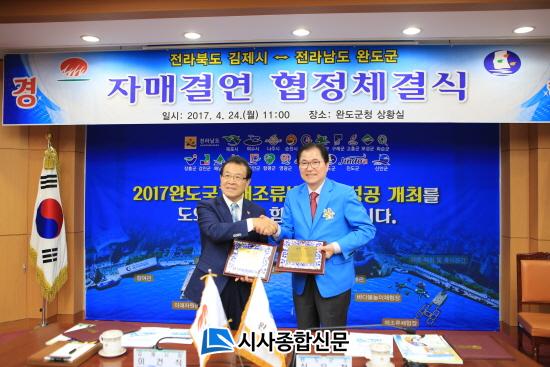 ÀÌ ÀÚ¸®¿¡´Â ½Å¿ìö ¿Ïµµ±º¼ö, ¿Ïµµ±ºÀÇȸ ¹ÚÁ¾¿¬ ÀÇÀå°ú ÀÌ°Ç½Ä ±èÁ¦½ÃÀå, ±èÁ¦½ÃÀÇȸ ±èº¹³² ºÎÀÇÀåÀ» ºñ·ÔÇÑ °ü°è °ø¹«¿ø 30¿©¸íÀÌ Âü¼®ÇßÀ¸¸ç, À̹ø ÇùÁ¤Àº Áö¹æÈ ½Ã´ëÀÇ µ¿¹ÝÀڷμ »óÈ£°£ Çù·Â°ú ¿ìÀǸ¦ µ·µ¶È÷ Çϰí, Æø ³ÐÀº ±³·ù¸¦ ÅëÇØ Áö¿ª °£ ¹Ì·¡ÁöÇâÀûÀÎ ¿ìÈ£°ü°è¸¦ ÁõÁø½ÃÄÑ Áö¿ª ¹ßÀü°ú °øµ¿ ¹ø¿µÀ» À§ÇØ ÃßÁøµÆ´Ù.