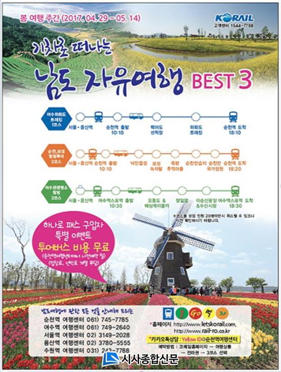 À̹ø »óǰÀº KTX¡¤ÀϹݿÂ÷¸¦ ÀÌ¿ëÇÏ¿© ¼øÃµ, ¿©¼ö¿¢½ºÆ÷¿ª¿¡ µµÂøÇÏ¿© Àü³²ÀÇ ÁÖ¿ä °ü±¤Áö¸¦ Àü¿ëÅõ¾î¹ö½º·Î °ü±¤ÇÏ´Â ´çÀÏ»óǰÀ¸·Î, (1ÄÚ½º) ¿©¼öÇÏȵµ ²É¼¶ Æ®·¹Å·, (2ÄÚ½º) ¼øÃµ¡¤º¸¼º Èú¸µÅõ¾î, (3ÄÚ½º) ¿©¼ö°ü±¤¸í¼Ò ޹æÅõ¾î·Î ÃÑ 3°³ÀÇ ÄÚ½º »óǰÀ¸·Î °ü±¤°´ÀÌ Æò¼Ò °¡º¸°í ½Í´ø °÷À» ¼±ÅÃÇÏ¿© °ü±¤ÇÒ ¼ö ÀÖ´Ù.