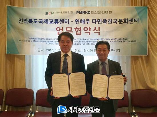 µ¿¾Æ½Ã¾Æ ´ë·ú ³¡ÀÌÀÚ À¯·´´ë·úÀ¸·Î °¡´Â ½Ã¹ßÁ¡ÀÎ ¿¬ÇØÁÖ´Â Áß±¹°ú ºÏÇÑ, ·¯½Ã¾Æ ±¹°æÀÌ ¸Â´êÀº °÷À¸·Î ¿Ü±³¡¤ ¾Èº¸¡¤°æÁ¦ÀûÀ¸·Îµµ Áß¿äÇÑ ÁöÁ¡À¸·Î ²ÅÈù´Ù. ÀüºÏµµ±¹Á¦±³·ù¼¾ÅÍ´Â 4¿ù 27ÀÏ ·¯½Ã¾Æ ¿¬ÇØÁÖ ¾Æ¸£Ãνø¦ ¹æ¹®ÇÏ¿© ¿¬ÇØÁÖ´Ù¹ÎÁ·Çѱ¹¼¾ÅÍ(ȸÀå Àü±¤±Ù)¿Í ¾÷¹«Çù¾àÀ» ¸Î°í ÇâÈÄ ¹Î°£±³·ù »ç¾÷, Áö¿ª Á¤º¸±³·ù, ÇÑ±Û º¸±Þ ¹× ±³À°»ç¾÷ µîÀ» »óÈ£ Çù·ÂÇϱâ·Î ¾à¼ÓÇß´Ù.