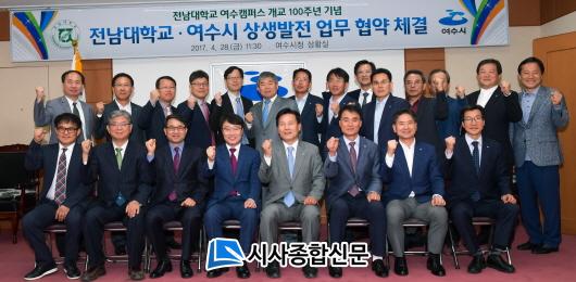 ÁÖöÇö ¿©¼ö½ÃÀå°ú Á¤º´¼® Àü³²´ëÇб³ ÃÑÀåÀº Áö³ 28ÀÏ ½Ãû »óȲ½Ç¿¡¼ ¿¸° Çù¾à½Ä¿¡¼ Ȱ¹ßÇÑ ±³·ù¿Í Çù·ÂÀ» ÅëÇØ Áö¿ª»çȸÀÇ ¹ßÀüÀ» µµ¸ðÇϰí Àü³²´ë ¿©¼öÄ·ÆÛ½ºÀÇ »õ·Î¿î 100³âÀ» ÇÔ²² ÁغñÇÏÀÚ°í ¾à¼ÓÇß´Ù.