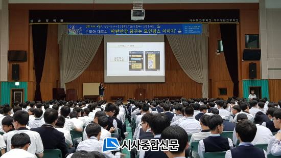 À̳¯ Ư°Àº ¿©¼öÁ¾°íÁßÇб³ Àü±³»ý 419¸íÀÌ Âü¼®ÇÑ °¡¿îµ¥ ¡®ÆÄ¶õ¸¸Àå ²Þ²Ù´Â ¸ðÀÎÆÊ½º À̾߱⡯¶ó´Â ÁÖÁ¦·Î 6Â÷ »ê¾÷ ÇöȲ°ú ÇÔ²² û³â ³ó¾÷ÀÎ ¼Õ¸ð¾Æ ´ëÇ¥ÀÇ µµÀü°ú ½ÇÆÐ·¼º°ø»ç·Ê¸¦ Áß½ÉÀ¸·Î ÁøÇàµÆ´Ù. ¼Õ¸ð¾Æ ´ëÇ¥´Â ºÎ»ê¿Ü´ë¸¦ Á¹¾÷ÇÑ µÚ ³ó¾÷ÀÇ ºñÀüÀ» º¸°í 2012³â °íÇâÀÎ ¿µ¾Ï±ºÀ¸·Î ±Í³óÇØ ³ó¾÷¹ýÀÎ ¡®¸ðÀÎÆÊ½º¡¯¸¦ ¼³¸³Çß´Ù.