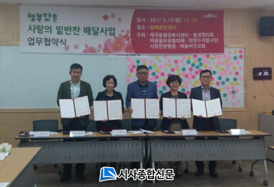 À̹ø Çù¾àÀº »ç¶ûÇѹ溴¿ø(º´¿øÀå ÇѰæÈ£), Çϴþ¾¾Ñ±³È¸(¸ñ»ç ÃÖ¼ºÁø), ¸Å°îµ¿¸¶Áß¹°º¸ÀåÇùÀÇü(À§¿øÀå Á¤±Í¸¸), ¸Å°îµ¿Èñ¸Á´©¸®ºÀ»ç´Ü(´ÜÀå ¼±Àç¼÷), ¸Å°îµ¿ÅëÀåÇùÀÇȸ(ȸÀå ¿ÀÁ¤¿ø) 5°³ ´Üü°¡ 300¿©¸¸¿øÀÇ ±â±ÝÀ» ¸¶·ÃÇØ ÃßÁøÇÏ°Ô µÆ´Ù. Çູ°ú »ç¶ûÀ» ´ãÀº ¹Ø¹ÝÂù ¹è´Þ»ç¾÷Àº ¿ù 1ȸ ģȯ°æ ¹Ø¹ÝÂùÀ» Á÷Á¢ ¸¸µé¾î 30¿© Àú¼ÒµæÃþ °¡Á¤¿¡ Àü´ÞÇϸç, Âü¿© ´Üü´Â º¹Áö»ç°¢Áö´ë¿¡ ³õÀÎ °¡Á¤À» Àû±Ø ¹ß±¼ÇØ Áö¿øÇÒ °èȹÀÌ´Ù.