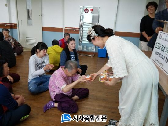 ±¤ÁÖ Àü³²Áö¿ª ÇϳªÀºÇà ÀÓÁ÷¿ø °¡Á·À¸·Î ±¸¼ºµÈ °¡Á·»ç¶ûºÀ»ç´Ü 40¿©¸íÀÇ È¸¿øµéÀº ³ë¼÷ÀÎ ¹× Á¤½ÅÀå¾ÖÀεéÀÇ µçµçÇÑ ¿ïŸ¸®°¡ µÇ¾î ÁÖ°í ÀÖ´Â Àξֿø°ú Àμ±¿ä¾ç¿øÀ» Á÷Á¢ ¹æ¹®ÇØ Á¤¼ºµé¿© ¸¸µç ´ÜÆÏ»§, ¼Òº¸·Î µî µû¶æÇÑ »§À» Àü´ÞÇß´Ù.