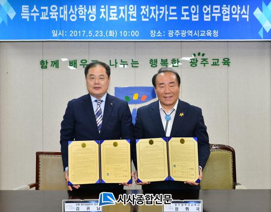 ±¤Áֽñ³À°Ã»(±³À°°¨ ÀåÈÖ±¹)ÀÌ 23ÀÏ NH³óÇùÀºÇà ±¤ÁÖ¿µ¾÷º»ºÎ(º»ºÎÀå ±è±Í³²)¿Í Ư¼ö±³À°´ë»óÇлý Ä¡·áÁö¿ø ¼ºñ½º ÀüÀÚÄ«µå ½Ã½ºÅÛ µµÀÔÀ» À§ÇÑ ¾÷¹« Çù¾àÀ» ü°áÇÏ°í ¿À´Â 9¿ùºÎÅÍ ½ÃÇàÇϱâ·Î ÇÕÀÇÇß´Ù.