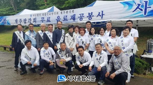 12³â° ȸ¿øµéÀÇ È¸ºñ µîÀ» ÅëÇØ ¼ø¼ö ÀÚ¿øºÀ»çȰµ¿À» Àü°³ÇÏ´Â Á¦ÁÖÆÈ°¢È¸¿¡ º¸ÈÆ´Üü °£ºÎ, Âü¹è°´ µîÀÌ ÆÈ°¢È¸ ÀÓ¿øÁøÀ» °Ý·ÁÇÏ´Â ¼Õ±æµµ À̾îÁ³´Ù. Àڸűâ°üÀÎ Á¦ÁÖÇØ¾ç°æºñ¾ÈÀü¼ ±èÀÎâ ¼Àå°ú °£ºÎÁøµµ ºÀ»çȰµ¿ ÅÙÆ®¸¦ ã¾Æ ³ë°í¸¦ °Ý·ÁÇß´Ù.