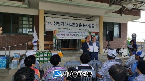 [°î¼º/½Ã»çÁ¾ÇսŹ®]¿À½ÂÅà ±âÀÚ = ³óÇùÀºÇà °î¼º±ºÁöºÎ(ÁöºÎÀå ½Å»ó¼±)Àº Áö³ 28ÀÏ ±â°ü´ÜüÀå°ú Áö¿ªÁֹΠµî 100¿© ¸íÀÌ Âü¼®ÇÑ °¡¿îµ¥ ¡®¶Ç ÇϳªÀÇ ¸¶À» ¸¸µé±â¡¯Çà»ç¸¦ °³ÃÖÇϰí Çѱ¹ÀÚ»ê°ü¸®°ø»ç Àü³²Áö¿ªº»ºÎ ±èµ¿¾ð º»ºÎÀåÀ» °î¼ºÀ¾ ½Å¸®¸¶À» ¸í¿¹ÀÌÀå, Á÷¿øµéÀº ¸í¿¹ÁÖ¹ÎÀ¸·Î À§ÃËÇß´Ù.