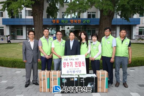 10ÀÏ È¼ø±º¿¡ µû¸£¸é ¿ì¸®ºÀ»ç´ÜÀº Áö³´Þ 23ÀÏ È¼ø±ºÃ»À» ¹æ¹®, ±è°æÈ£ ºÎ±º¼ö¿¡°Ô ¼öÁ߸ðÅÍÇü 3´ë¿Í ¿£ÁøÇü 2´ë µî 5´ëÀÇ ¾ç¼öÀåºñ¸¦ Àü´ÞÇß´Ù. ±âÁõµÈ ¾ç¼ö±â´Â °¡¹³±Øº¹À» À§ÇØ Ãá¾ç¸é¿¡ 3´ë, µµ°î¸é¿¡ 2´ë°¡ Àü´ÞµÆ´Ù.