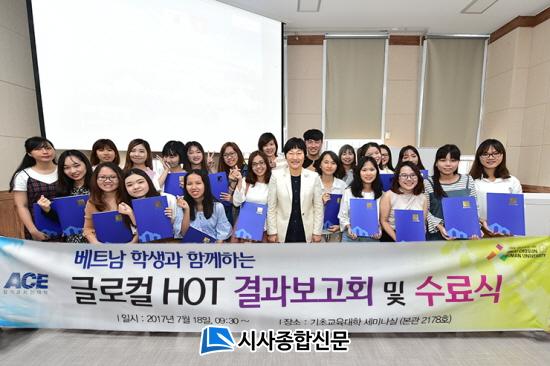 ¼ö·á½Ä¿¡¼´Â º£Æ®³² Çлýµé°ú Çѱ¹ ÇлýµéÀÌ ÆÀÀ» ÀÌ·ï ÁøÇàÇÑ ¡®±Û·Î¹ú HOT¡¯ °á°ú º¸°íȸµµ ¿·È´Ù. Á¶¼±´ëÇб³ ACE»ç¾÷´Ü(´ÜÀå È«¼º±Ý)ÀÇ ´ëÇ¥ ÇÁ·Î±×·¥ÀÇ ÇϳªÀÎ HOT(Hang Out, Together)´Â 1Çгâ~4Çгâ ÇлýÀÌ ÇÑ Á¶¸¦ ÀÌ·ï ¼±ÈÄ¹è °£¿¡ ¼ÒÅëÇϰí Çо÷ Á¤º¸¿Í ¹®È ÄÜÅÙÃ÷¸¦ °øÀ¯ÇÏ´Â ¼±ÈÄ¹è ¹®ÈÇнÀ °øµ¿Ã¼ÀÌ´Ù.