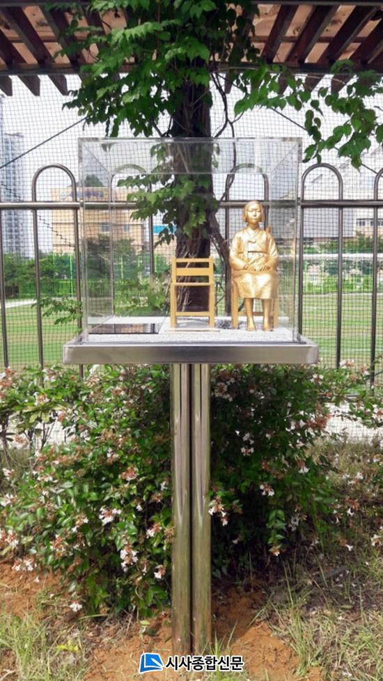 Ȳ½ÂÇö ÇлýȸÀåÀº ¡°2011³â 12¿ù14ÀÏ ÀϺ»±º ¡®À§¾ÈºÎ¡¯ ÇÇÇØÀÚ ÇÒ¸Ó´ÔµéÀÇ ¼ö¿äÁýȸ 1000ȸ(20³â)¸¦ ¸ÂÀÌÇØ ÀϺ»Á¤ºÎÀÇ °ø½ÄÀûÀÎ »çÁË¿Í ¹ýÀû ¹è»óÀ» ¹Ù¶ó´Â ¸¶À½À» ´ã¾Æ ÁÖÇÑ ÀϺ»´ë»ç°ü ¾Õ¿¡ ¼Ò³à»óÀ» Á¶°¢ÇØ ¼³Ä¡Çß´ø ¸¶À½À», °°Àº ÀÛ°¡ÀÇ ÀÛÀº ¼Ò³à»óÀ¸·Î º»±³ ±³Á¤¿¡ °Ç¸³ÇÔÀ¸·Î½á À§¾ÈºÎ ¹®Á¦Çذῡ µµ¿òÀ» ÁÖ°íÀÚ ÇÑ´Ù¡±°í ¸»Çß´Ù.