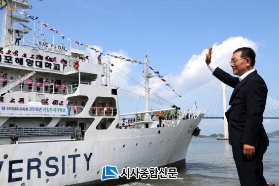 ÀÔ±³½Ä¿¡´Â Âü¿© Çлý°ú Çкθð, ±³¿ø, µµ±³À°Ã»°ú ¸ñÆ÷ÇØ¾ç´ëÇб³ °ü°èÀÚµéÀÌ ÇÔ²² ÇÑ´Ù.µµ³» ÁßÇб³ 2Çгâ ÃÑ 220¸íÀÇ Âü¿© ÇлýÀº ¼±»ó¹«Áö°³Çб³ Á¤º´±¹ ±³ÀåÀÇ ÀÔÇÐ Çã°¡·Î 14Àϰ£ÀÇ ¿©Á¤À» ½ÃÀÛÇÑ´Ù. ¿ÃÇØ ¼±»ó¹«Áö°³Çб³´Â ¸ñÆ÷ÇØ¾ç´ëÇб³ ½Ç½À¼± ¼±¹Ú 2ôÀ» ÀÌ¿ëÇÑ ±¹Á¦Ç×ÇØ üÇè ÇнÀÇÁ·Î±×·¥À¸·Î ¸ñÆ÷, Áß±¹(»óÇÏÀÌ), ÀϺ»(ÈÄÄí¿ÀÄ«)ÀÇ °æ·Î·Î Ç×ÇØÇÑ´Ù.