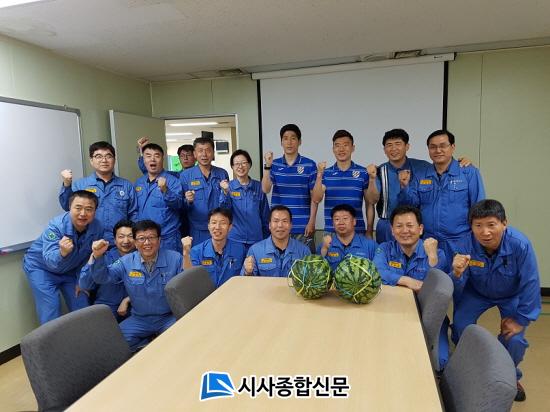 ÇöÀåÀ» ¹æ¹®ÇÑ ±è¿µ¿í ¼±¼ö´Â ¡°Áö³ ±¤¾çÁ¦Ã¶¼Ò ÇöÀåüÇè¿¡¼ ´À²¸ºÁ¼ ¾ó¸¶³ª ÈûµçÁö Àß ¾È´Ù. ´õ¿î ³¯¾¾¿¡ ¼ö°íÇϽô Á÷¿øºÐµéÀ» À§ÇØ Èû³»¶ó´Â Àǹ̿¡¼ ¼ö¹ÚÀ» ÁغñÇß´Ù. ÀÛÀº °ÍÀÌÁö¸¸ ´õÀ§¸¦ Á¶±ÝÀÌ¶óµµ ½ÄÇûÀ¸¸é ÁÁ°Ú°í, ¹«¾ùº¸´Ù °Ç°ÀÌ ÃÖ°íÀθ¸Å ¹«´õ¿î ³¯¾¾¿¡ °Ç° Àß Ã¬±â¼ÌÀ¸¸é ÁÁ°Ú´Ù.¡±°í Àλ縦 ÀüÇß´Ù.