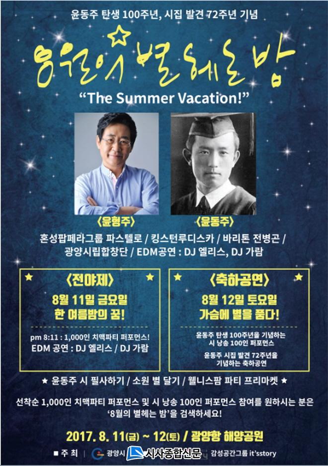 | ±¤¾ç½Ã, À±µ¿ÁÖ Åº»ý 100Áֳ⠱â³ä¡®8¿ùÀÇ º° Çì´Â ¹ã Festival¡¯°³ÃÖ À±µ¿ÁÖ! ¿µ¿øÇÑ ¹þ Á¤º´¿í°ú ÇØ¾ç°ø¿ø ¹ãÇϴÿ¡¼ º°·Î ¸¸³ª´Ù