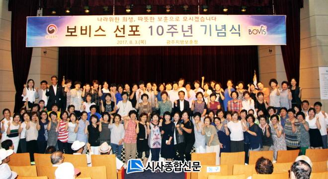 Áö³ 3ÀÏ ±¤ÁÖÇÕµ¿Ã»»ç ´ë°´ç¿¡¼ º¸ºñ½º ¼±Æ÷ 10ÁÖ³âÀ» ¸Â¾Æ Àç°¡º¹Áö ±¹°¡º¸ÈÆ´ë»óÀÚ¿Í º¸ÈƼ¶±èÀÌ, º¸Èƺ¹Áö»ç, º¸Èưø¹«¿ø µî 120¿©¸íÀÌ Âü¼®ÇÑ °¡¿îµ¥ º¸Èƺ¹ÁöÀηÂÀÇ ³ë°í¸¦ °Ý·ÁÇÏ°í µû¶æÇÑ º¸Èƺ¹Áö¸¦ ¾Ë¸®´Â ±â³äÇà»ç¸¦ °¡Á³´Ù°í ¹àÇû´Ù. À̹ø Çà»ç´Â 2007³â 8¿ù 5ÀÏ Á¦Á¤․¼±Æ÷µÈ ã¾Æ°¡´Â º¸Èƺ¹Áö¼ºñ½º ¡®º¸ºñ½º(BOVIS)¡¯È°µ¿ 10ÁÖ³âÀ» ±â³äÇÏ¿© ½Ç½ÃµÇ¾úÀ¸¸ç, ±â³ä È«º¸µ¿¿µ»ó ½Ãû ¹× ¸ð¹ü º¹ÁöÀη ǥâ, ±â³ä»ç¿¡ ÀÌ¾î º¸ÈƼ¶±èÀÌ »ç·Ê¹ßÇ¥ ¼øÀ¸·Î ÁøÇàµÇ¾ú´Ù.