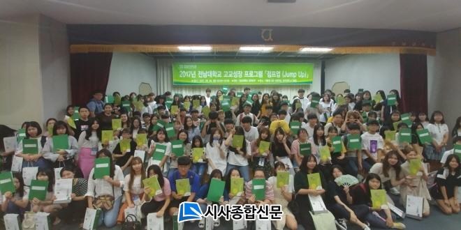 Àü³²´ëÇб³´Â ±¤ÁÖ¡¤Àü³²°ú ÀüºÏ Áö¿ªÀÇ °í¸¥±âȸ ÀÔÇÐÀüÇü Áö¿ø ÀÚ°ÝÀ» °¡Áø °í±³ 1, 2Çгâ Çлý 148¸íÀÌ Âü°¡ÇÑ °¡¿îµ¥ Áö³ 8¿ù 4ÀÏ(±Ý) ÇÏ·ç µ¿¾È ±³³» ÀÏ¿ø¿¡¼ ¡®Á¡ÇÁ¾÷(Jump Up)¡¯ ÇÁ·Î±×·¥À» ÁøÇàÇß´Ù.