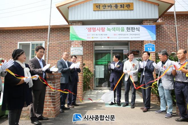 À̳¯ °ÀÎ±Ô ½ÃÀå, ±èÆÇ±Ù ½ÃÀÇȸÀÇÀå, µµ¡¤½ÃÀÇ¿øÀ» ºñ·ÔÇØ, »ý¸íº¸Çè»çȸ°øÇåÀç´Ü »óÀÓÀÌ»ç, Çѱ¹Àڻ쿹¹æÇùȸ »ç¹«±¹Àå, Àü¶ó³²µµ º¸°Çº¹Áö±¹Àå, ±¹¸³³ªÁÖº´¿øÀå, ¸¶À»ÁֹΠµî 100¿©¸íÀÌ Âü¼®ÇØ ÇöÆÇ½ÄÀ» ÃàÇÏÇß´Ù. »ý¸í»ç¶û ³ì»ö¸¶À»Àº ¸¶À» ÁÖ¹ÎÀÌ ¼·Î¼·Î »ý¸íÀ» ¼ÒÁßÈ÷ ¿©±â°í ÀÚ»ìÀÌ ¾ø´Â ¸¼°í ¼ø¼öÇÑ ¸¶À»À̶ó´Â Àǹ̸¦ ´ã°í ÀÖ´Ù.