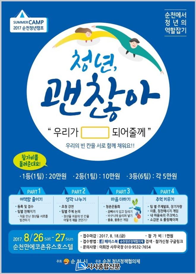 À̹ø Ä·ÇÁ´Â ¼øÃµÃ»³âÁ¤Ã¥ÇùÀÇü¿¡¼ ¸ðµç Çà»ç¸¦ ÁøÇàÇϸç, Âü°¡Èñ¸ÁÀÚ´Â ¿À´Â 18ÀϱîÁö ÆäÀ̽ººÏ¡®¼øÃµÃ»³âÁ¤Ã¥ÇùÀÇü(@suncheonyoungpeople)¡¯¿¡¼ ½ÅûÇÏ¸é µÈ´Ù.
