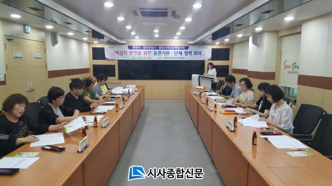 À̳¯, ±¤¾ç½Ã ¾ÈÀüÃѰý°ú¿Í »çȸº¹Áö°ú, °ø¿ø³ìÁö»ç¾÷¼Ò µî ¾ÈÀü°ü·Ã 3°³ºÎ¼¿Í ±¤¾ç°æÂû¼, ½Ã ¿©¼º´ÜüÇùÀÇȸ, °¡Á¤Æø·ÂÇÇÇØÀÚº¸È£½Ã¼³, ¾Æµ¿?¿©¼ºÁö¿ª¿¬´ë À§¿øÈ¸ µî ÃÑ 5°³ ±â°ü 20¿© ¸íÀÌ ÇÑÀÚ¸®¿¡ ¸ð¿© ¿©¼º¾ÈÀü¿¡ ´ëÇØ °í¹ÎÇÏ´Â ½Ã°£À» °¡Á³´Ù. Âü¼®ÀÚµéÀº °¢ ±â°ü¿¡¼ ÃßÁø ÁßÀÎ ¾ÈÀü ½ÃÃ¥¿¡ ´ëÇÑ ¼³¸í°ú ¿©¼ºÀÌ ´À³¢´Â ¾ÈÀü ½ÇÅÂ¿Í °³¼± »çÇ׿¡ ´ëÇÑ ¿©¼ºµéÀÇ ÀǰßÀ» ¼ö·ÅÇÏ°í ¾ÈÀüÀ» À§ÇÑ ½Å±Ô½ÃÃ¥ ¹ß±¼°ú Çù¾÷ ¹æ¾ÈÀ» ³íÀÇÇß´Ù.