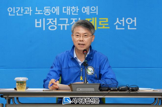 ¹Î ±¸Ã»ÀåÀº ºñÁ¤±ÔÁ÷ Á¦·Î ¼±¾ð¿¡ ºüÁø ½Ã°£¼±ÅÃÀÓ±âÁ¦ °ø¹«¿ø¿¡ ´ëÇÑ ÀÔÀåµµ ¹àÇû´Ù. ÇöÀç Á¤ºÎ´Â ½Ã°£¼±ÅÃÀÓ±âÁ¦ °ø¹«¿øÀ» Á¤±ÔÁ÷À¸·Î ºÐ·ùÇÑ´Ù. ÇÏÁö¸¸ ¹Î ±¸Ã»ÀåÀº ¡°°è¾à ±â°£À» 5³âÀ¸·Î Á¦ÇÑÇ߱⠶§¹®¿¡ ºñÁ¤±ÔÁ÷À¸·Î ºÁ¾ß ÇÑ´Ù¡±¸ç ¡°¹ý°ú Á¦µµÀÇ »ç°¢Áö´ë¿¡ ÀÖ´Â °ø¹«³ëµ¿ÀÚµéÀÌ Á¤³âÀ» º¸Àå¹Þ´Â Á¤±ÔÁ÷ÀÌ µÇµµ·Ï Á¤ºÎ¿¡ Á¦µµ°³¼±À» °ÇÀÇÇϰڴ١±°í ´ÙÁüÇß´Ù.