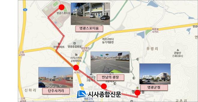±º¹Î ÈÇÕ °Ç°´Þ¸®±â Çà»ç´Â ¿µ±¤±º¹ÎÀÇ ³¯ ÃßÁøÀ§¿øÈ¸(ÃßÁøÀ§¿øÀå ¹Ú¿ë±¸)°¡ ÁÖÃÖÇÏ°í ¿µ±¤±º À°»ó¿¬¸Í(ȸÀå ÃÖ¼ºÈ¯) ÁÖ°üÀ¸·Î Ä¡·ïÁö¸ç, ±ºÃ» ±¤Àå¿¡¼ ¿ÀÀü 9½Ã 30ºÐ Ãâ¹ßÇØ ¡æ ¸¸³²ÀÇ ±¤Àå ¡æ ´ÜÁÖ»ç°Å¸® ¡æ ½ºÆ÷Ƽ¿ò »ï°Å¸®¸¦ °ÅÃÄ ÃÖÁ¾ µµÂøÁöÀÎ ½ºÆ÷Ƽ¿òÀ» ´Þ¸®´Â ¾à 4.1§° ÄÚ½º·Î ÁøÇàµÈ´Ù.